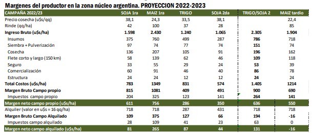Los márgenes actualizados al 2 de junio de 2022 indican que el maíz temprano sigue encabezando el ranking de márgenes netos con 756 u$s/ha, le siguen la rotación trigo/soja 2° con 636 u$s/ha y la soja de primera con 611 u$s/ha. ¿Entonces? En la región núcleo señalan incertidumbre climática, económica y política, y que la soja de primera es elegida por seguridad. “Los productores ajustados por la seca tienen temor de gastar para sembrar gramíneas”, dicen en Bigand. “Hay una gran incertidumbre económica y política”, dicen en Marcos Juárez. Y también climática, ya que agregan: “se han bajado muchos lotes por falta de agua en trigo. Se sembrará un 35% menos que el año pasado”. “El área de maíz temprano va a depender de la recarga de agua en el perfil del suelo”, dicen en Cañada Rosquín. “Se está planificando la campaña teniendo en cuenta el clima y los costos de los insumos”, dicen en Carlos Pellegrini dónde advierten que el trigo sufrirá “una notable disminución en cantidad y calidad de fertilización”.