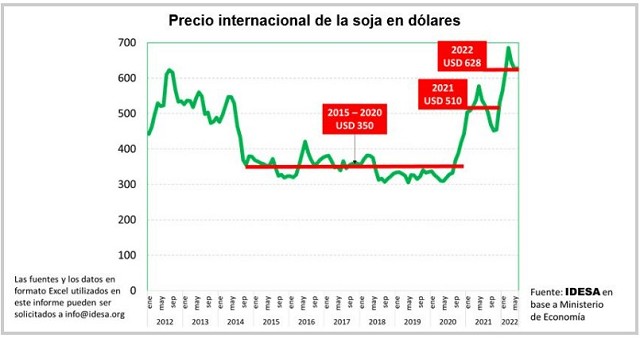 En lo que va del 2022, el precio de la soja es de USD 628.