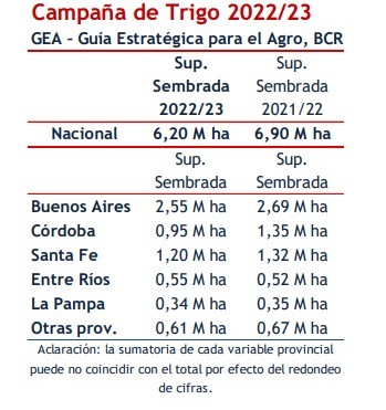 La intención de siembra del ciclo 2022/23 se ajusta a 6,2 M ha