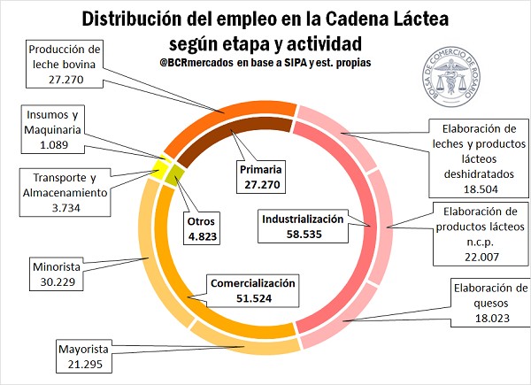 • El grueso del empleo en la cadena Láctea está en la etapa de industrialización, seguido de cerca por la etapa de comercialización