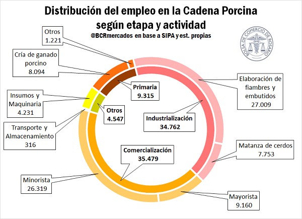 • En la cadena porcina, la etapa de comercialización es la que más puestos de trabajo crea.