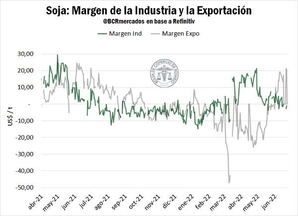 Es decir que, en definitiva, si bien a simple vista pareciera que existe un retraso en la comercialización de soja, se puede concluir del análisis precedente que esto no es cierto para el sector industrial, en tanto que para el sector exportador responde a las condiciones del mercado. Durante la mayor parte de los últimos meses, el margen de la industria ha sido muy superior al margen del sector exportador. Si bien esta relación se invirtió en las últimas semanas, el cambio es muy reciente por lo que aún no se ve reflejado en los niveles de compra del sector exportador.