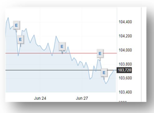 Si nos fijamos en el recorrido que viene haciendo el dólar respecto a las demás monedas, advertiremos que desde el día 23 de junio, su valor evoluciona en baja. ¿En baja? Sí, en baja.