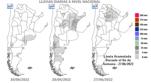 Sólo el centro sur de Santa Fe recibió lluvias destacadas el martes 28 de junio. El mayor registro fue el de Clason con 17 mm. La aguja que marca la siembra se movió tan solo un 5% en la última semana, alcanzando casi 1 M ha de las 1,43 M ha intencionadas. En el norte bonaerense se han incorporado algunos lotes esta semana, donde había algo de humedad. El avance de la región es del 70%, el más bajo de los últimos 10 años. Solo en el centro sur de Santa Fe hay posibilidades de incorporar unas 50.000 a 100.000 ha más gracias a las lluvias del último martes 28.