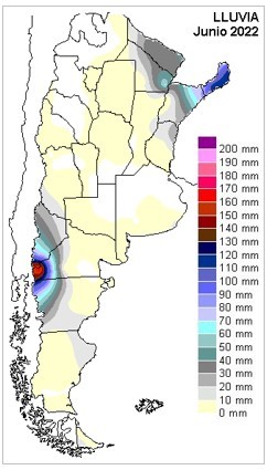 Esta situación marco de entrada el desarrollo del mes de junio, sesgando en forma negativa la oferta de agua e impidiendo una recuperación respecto del patrón deficitario ya instalado en mayo. Durante la segunda quincena de junio, el aire de origen tropical logró reposicionarse, aunque solo bastó para generar nieblas y algunas lluvias débiles en el litoral en las últimas jornadas del mes. En general durante junio, la falta de lluvias se profundizó en gran parte del país.