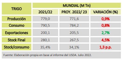 A continuación, se detallan las principales variaciones mensuales, en términos mundiales (Fuente: USDA):