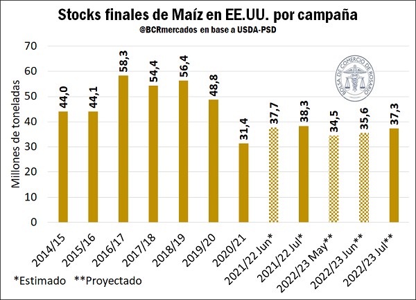 Es decir que la lectura puede considerarse mixta: si bien la campaña actual finalizaría con stocks mayores a los previstos hace un mes, el próximo ciclo estaría más ajustado con relación a lo que se vislumbraba en junio. De todas maneras, cabe remarcar que, con estos números, los stocks entre campañas crecerían por primera vez en cuatro años.