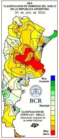 En la región núcleo, los lotes en condición entre regular y mala aumentaron 100.000 hectáreas en la última semana. Ahora alcanzan un 20% del área sembrada del trigo de la región, tras las últimas heladas de esta semana. En promedio, la región alcanzó mínimas de -2ºC a -4ºC. En Bellville se registró -4,7ºC el 18 de julio.