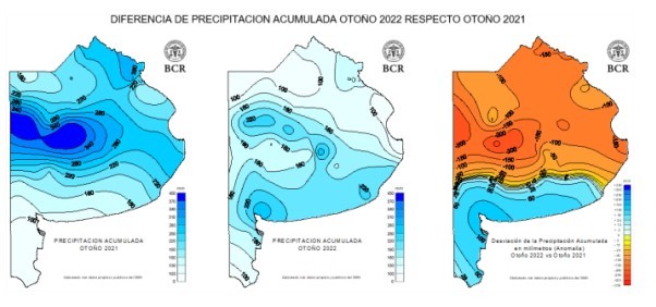 La falta de agua sigue expandiéndose sobre el norte, el centro y el bonaerense, algo que no se veía en los últimos quince años. ¿Porque está sucediendo esto? Aunque llama la atención la falta de agua desde junio, el problema viene de antes y es el otoño seco y el exigente verano pasado. El otoño del 2022 le debe al 60% del territorio bonaerense entre 100 y 200 mm respecto a lo que sucedía un año atrás. Lo único bueno es que en sur bonaerense el otoño dejó 60 a 100 mm más.