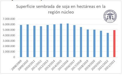 En la región, el aumento estimado es de un 11%. La soja vuelve a apuntar a un área cercana a los 5 M ha: en concreto 4,95 M de ha tras haberse sembrado el hectárea más bajo de los últimos 15 años en la región (4,45 M de ha).