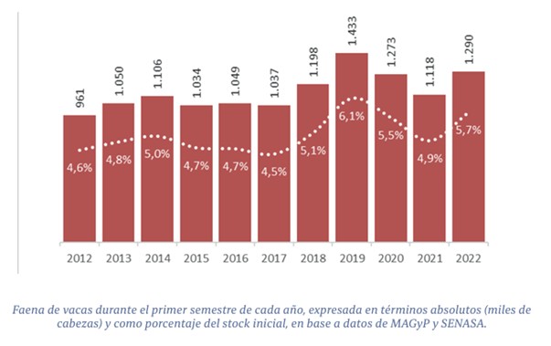 Se trata de la segunda faena de vacas más alta en los últimos 10 años tanto en términos absolutos como en porcentaje del stock inicial.