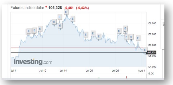 Pero después de muchas jornadas de subas, el índice dólar viene mostrando una clara tendencia a la baja, desde mediados del mes pasado.