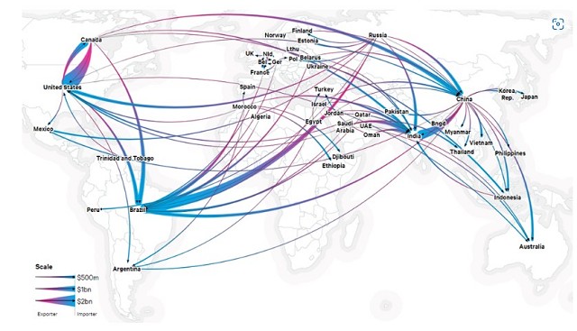 Gráfico 3. Principales flujos de comercio de fertilizantes - 2020 - USD