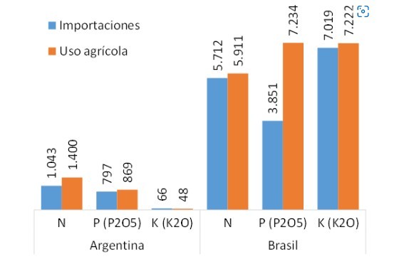 Por otro lado, al observarse el interior de los mercados tanto brasilero como argentino, ambos países dependen en gran medida de las importaciones para satisfacer las necesidades de fertilizantes de su sector agrícola (Gráfico 5).