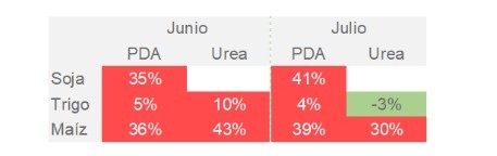 En el último año los precios de los fertilizantes exhibieron un marcado incremento, incluso en relación con el precio de los granos. Para el caso del maíz, en julio se necesitaba en Argentina entre un 30% y un 39% más de grano para comprar la misma cantidad de fertilizantes que el año pasado, lo que impacta negativamente sobre la decisión del productor.