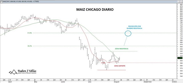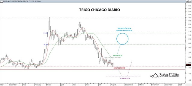 Sólo con caídas debajo de la zona de soporte propuesta, estaremos considerando un escenario de mayor vulnerabilidad para el cereal, con destino de 680 centavos, al menos.
