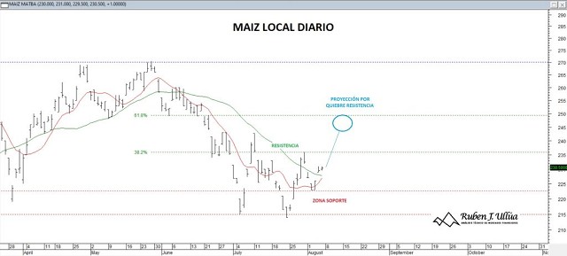 Sólo con caídas debajo de los 215 dólares, estaremos cancelando las expectativas de recuperación mayor y en tal caso el cereal se mostrará vulnerable a debilidades mayores.