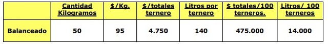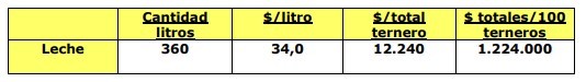Calculando para los 100 terneros que pasan por la crianza, el costo distribuido en ellos sería de $140,70 o su equivalente en litros de leche de 4,1.