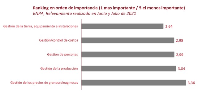 Esta valoración representa un cambio respecto de los resultados relevados en la Encuesta Nacional de Productores Agropecuarios (desarrollada en el mes de julio de 2021), en la que se había puesto en evidencia un cambio en las estrategias de crecimiento los productores, apuntando a un modelo de negocios de más capital intensivo (inversiones), con operaciones y productos de mayor valor agregado. "Los ruidos de la coyuntura actual, han derivado en que el productor vuelva a centrarse en la gestión de costos y la eficiencia productiva agrícola, para garantizar el éxito económico", concluye el informe del Centro de Agronegocios de la Universidad Austral.