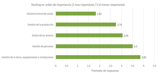 Finalmente, esta edición consultó sobre la percepción respecto a los factores de éxito para la campaña 2022-23, frente a los desafíos de la coyuntura actual. Los productores rankearon actividades en función de la importancia que estiman para lograr el éxito en sus explotaciones, e identificaron la gestión de costos como el factor de mayor importancia.