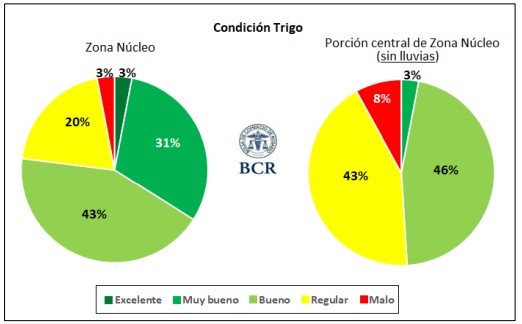 En la franja central de zona núcleo los cuadros regulares y malos de trigo superan el 50%
