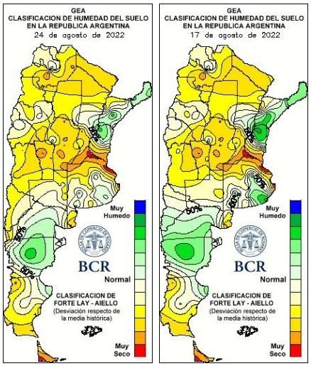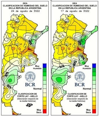 reservas hídricas durante la primera quincena del mes están desapareciendo”, dice Aiello. “Condiciones estables, un nuevo periodo de ausencia de lluvias y el aumento estacional de la insolación diaria hicieron retroceder de los niveles de humedad en los perfiles”.