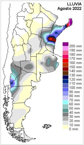 El mes de agosto se caracterizó por mostrar un comportamiento con mejoras irregulares y sectorizadas, con algunas lluvias que incluso avanzaron sobre la provincia de CB. El sur de SF, sur de CB, LP, norte bonaerense y sudoeste de ER continuaron con precipitaciones muy pobres, afianzando las dudas para la normal evolución de los cultivos de invierno.