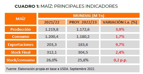 A nivel global, la campaña 2021/22 finalizó con una producción un 8% mayor a la del ciclo previo. Los envíos externos, con un valor de 203 M Tn, crecieron un 11% i.a., siendo EE.UU., Brasil y Argentina los principales exportadores (Fuente: USDA).