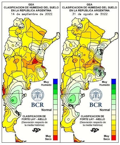 El año pasado había un 25% sembrado al 15 de setiembre, pero en el 2022 solo hay sembrados lotes muy aislados que no alcanzan siquiera para contabilizar un 1%. Hay mucha preocupación ante la falta de lluvias en los pronósticos y la falta de agua en los perfiles para implantar un cultivo que lleva consiga una enorme carga financiera. En Teodelina explican: “los análisis de agua de la zona muestran que ningún lote alcanza al 70% de agua útil en los primeros dos metros. Por eso, el riesgo es que llueva 15 o 20 mm y se largue igual la siembra con estas condiciones, por el hecho de muchos ya fertilizaron”.