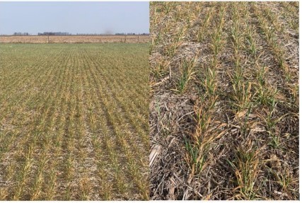 El trigo sufre otro golpe con otra semana sin lluvias y con las heladas que se repiten al llegar el fin de semana. La condición regular a mala pasa del 54% al 70% en la región, o sea a 900.000 ha. Esta vez los registros más bajos se dieron entre el 10 y 11 de setiembre. En la región núcleo las mínimas estuvieron entre 0ºC y 3ºC bajo cero, con Hernando, en Córdoba, con 3,5ºC bajo cero. A principios de la semana ingenieros de los alrededores de Rosario alertaban del impacto: “revisando con lupa se ve tallos que pasaron de verdes a una coloración té con leche. Calculamos un 30% menos de espigas, daños que sin lluvias no se va a poder compensar y que pasará a los rindes”. “Las heladas están haciendo más daño que la sequía. Los regulares pueden pasar de los 20 qq/ha si para de helar”, señalan en Cañada de Gómez, pero todos en la región coinciden. Las variedades sensibles están muy afectadas, han sufrido daños graves y son gran parte de los cuadros que están en condiciones malas a regulares. Muchas áreas ya están dando por perdidos numerosos lotes afectados, como en Marcos Juárez, Cañada de Gómez y Bigand o Corral de Bustos, dónde se han tomados estas fotos.