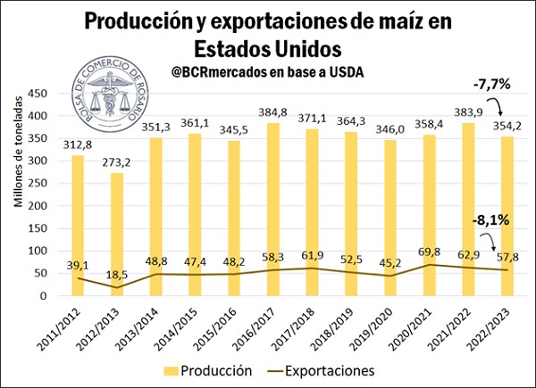En sentido contrario, a nivel global el USDA ajustó al alza las estimaciones de producción de maíz. Con más producción en China, Ucrania y Canadá, se robustece la producción mundial del grano amarillo. Sin embargo, el impacto en precios de este repunte productivo mundial se ve limitado por el hecho de que China y Canadá son importantes productores, pero no exportadores de maíz. No conforme con ello, Ucrania ve limitadas sus perspectivas exportadoras en la continuidad del corredor de granos del Mar Negro, acordado entre Rusia, Ucrania, Turquía y la ONU. En las próximas semanas se definirá el futuro del acuerdo, que vence el 19 de noviembre de este año.