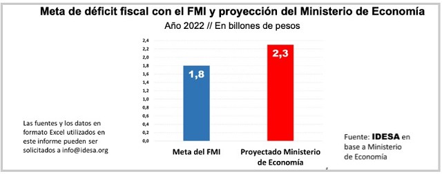 Estos datos muestran que, suponiendo que las proyecciones del gobierno se hacen realidad, la Argentina incumplirá la meta de déficit fiscal en 2022. Mientras el acuerdo contempla un tope de $1,8 billones para el déficit fiscal primario, el Ministerio de Economía proyecta un desequilibrio de $2,3 billones. La diferencia se explica por el vertiginoso proceso inflacionario. Por eso, medido en términos del PBI los desvíos son menos profundos.