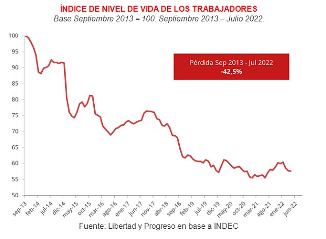 En julio. mostró una caída de 1,9% mensual en julio (último dato disponible), la segunda mayor caída mensual en toda la Administración Fernández (la más pronunciada había sido en el año 2020). Con esto, el Índice revirtió la recuperación del segundo semestre de 2021 y volvió a los niveles que ostentaba en diciembre de 2019, mes de la asunción del presidente Alberto Fernández.