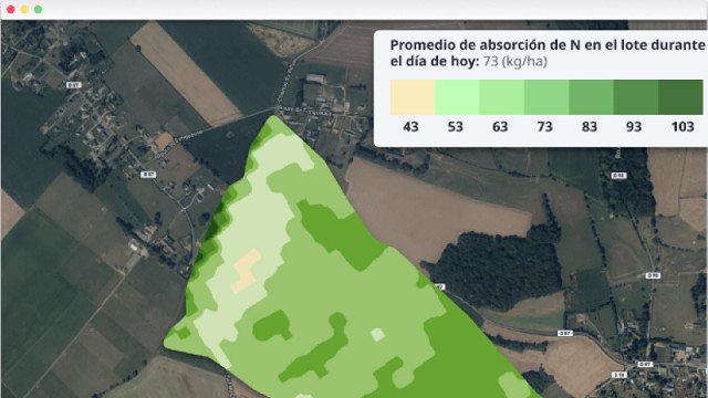 La comparación puede ser presentada por el "N-Uptake", un nuevo mapa en el mercado, que permite mostrar rápidamente y de manera práctica la absorción de nitrógeno acumulado por el cultivo en un día específico. El mapa contiene diferentes colores que indican si la tasa de nitrógeno en cada lote es alta o baja, ayudando a identificar anomalías en los cultivos y brindando mayor precisión y asertividad en el uso de fertilizantes.