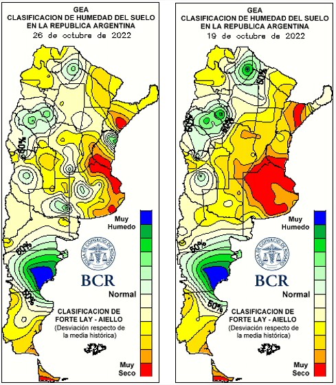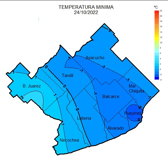 Se destaca el último evento de heladas del fin de semana del 24 de octubre. Hubo registros de temperaturas mínimas de -2,4°C en Mar del Plata y de -1°C en Tandil. Los ingenieros del gran área productiva tandilense dicen lo siguiente: “El viernes (21/10) veíamos que la deficiencia (hídrica) era muy generalizada. Y luego tuvimos la tercera helada tras la del 9 y el 14. Los efectos de esta última (24/10) la vamos a ver la semana que viene. Pero el impacto en general va a ser muy importante, mucho más de lo que se creía. El combo sequía y helada va a dejar efectos más fuertes de lo que se preveía. Hay sectores que por estar en relieves altos no deberían estar afectados y ya se ven daños. Hay susto, esa es la palabra”. Lamentablemente, octubre puede terminar un nuevo evento de heladas por un nuevo ingreso de aire frío que se pronostica para el próximo fin de semana.