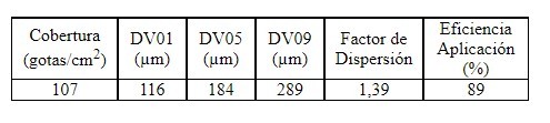 Se realizó una medición a campo con tarjetas hidrosensibles donde se obtuvieron los siguientes resultados: