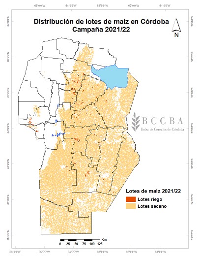Río Cuarto fue el departamento con mayor extensión de maíz, alcanzando aproximadamente 600 mil hectáreas. Le siguieron General Roca y San Justo con algo más de 300 mil ha cada uno.