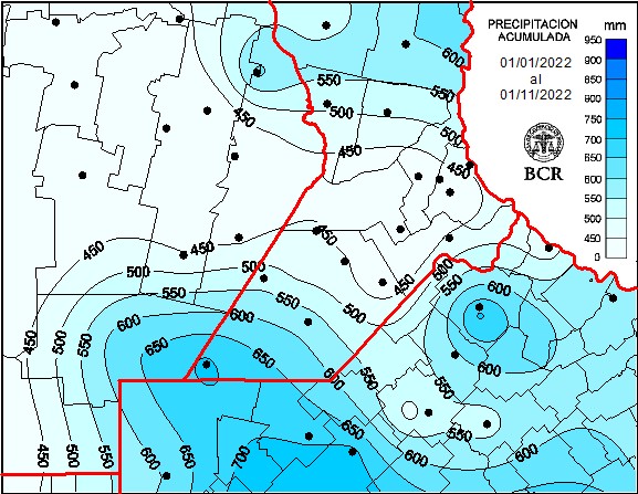 Si bien toda el área está con las reservas de agua en rojo, la zona donde mayor es el déficit comprende un 42% de la región núcleo. Allí, las precipitaciones acumuladas en lo que va del año arrastran un déficit de 450 mm. El avance de siembra en esta área esta en torno del 10 a 17% y las condiciones de implantación son muy limitantes. En Rojas lo explican así: “desde el 25 de mayo hasta hoy llovieron solo 50 mm: 25 mm en mayo y 25 mm hace 15 días. De esta manera sembramos un 15% en de la soja de primera. Se avanzó en lotes muy bien rotados, barbechados y con buena cobertura. Sin embargo la humedad alcanza únicamente para la germinación por lo que necesitamos sí o sí, que llueva este fin de semana”. Desde Bombal, dicen: “el panorama es desolador: tenemos acumulados en lo que va del año solo 450 mm de los 850 mm promedio anual del área. Cuando caen 20 milímetros el viento se los lleva enseguida”. Allí el avance es del 1% y las labores se frenaron a la espera de agua.