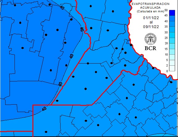 “La evapotranspiración diaria transfirió a la atmósfera un total aproximado de entre 25 y 35 milímetros en los primeros 9 días del mes”, explica el consultor Elorriaga. “Empezamos a transitar un período donde los requerimientos atmosféricos comienzan a intensificarse debido a una mayor cantidad de horas de radiación solar y temperaturas en ascenso. Por lo que para optimizar el nivel de reserva de los suelos se requieren lluvias muy abundantes. Deberían estar en el orden de los 140 y 180 mm en los próximos 15 días”, afirma el especialista.