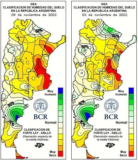 Desde hoy (jueves 10) hasta el martes 14 serán días con probabilidad que se presenten lluvias y tormentas de variada intensidad en diferentes zonas de GEA. El momento de mayor inestabilidad se concentra durante el fin de semana. Si bien no se esperan acumulados demasiado abundantes, las precipitaciones pueden ser relativamente generalizadas y un alivio en aquellos sectores con perfiles menos castigados. Sin embargo, si se valida este modesto escenario de lluvias la presión pluvial para la segunda quincena del mes va a ser muy importante. Los últimos quince días del mes deberán proveer un volumen de agua alejado de las estadísticas solo para alcanzar los valores normales de noviembre y dar un poco más de previsibilidad a la siembra de la gruesa.