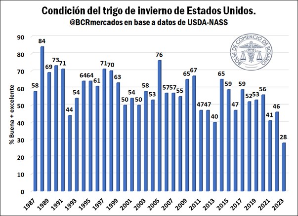 Trigo de invierno estadounidense: sólo el 28% de bueno a excelente
