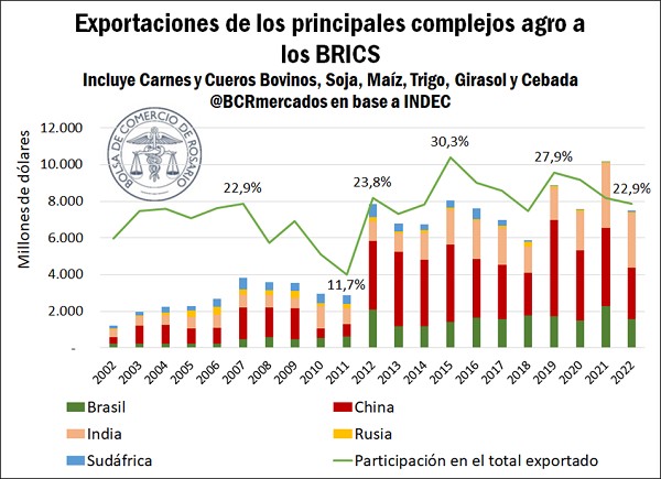 Sumando a Argentina, el posible BRICSA incorporaría a su bloque al principal exportador mundial de harina y aceite de soja, además de un actor clave en el abastecimiento mundial de poroto de soja, maíz, trigo, cebada, girasol y sorgo para el mundo.