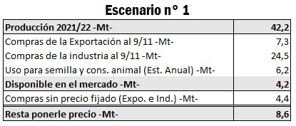 A la hora de estimar cual es el universo de mercadería que resta por comercializar en la campaña, se plantean dos escenarios distintos:
