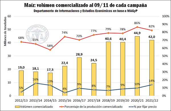 Maíz 2021/22. Situación Comercial: ya se comercializaron 42 millones de toneladas de maíz de la cosecha 2021/22