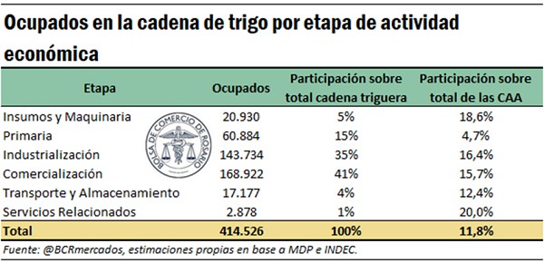 La cadena triguera es una importante generadora de empleo privado a nivel federal, con más de 414.000 puestos de trabajo