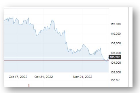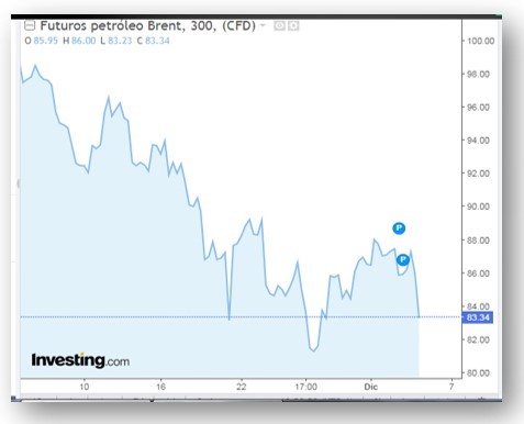El siguiente cuadro nos muestra la tendencia negativa en los precios del petróleo, en los últimos 30 días y la visible baja en los últimos dos días.