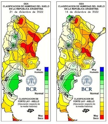 Entre zonas atrasadas y lotes que tienen que resembrarse, el 8% de área de soja (1ra y 2da) sigue en la espera. Ya hay productores que dicen que no van a seguir sembrando en estas condiciones. Ante la imposibilidad de recuperar lo invertido, muchas explotaciones agropecuarias de punta del noreste de Buenos Aires determinaron no invertir en este contexto de escasez de agua y suspender las tareas de siembra. En Baradero, solo hay un 20% de los lotes implantados. En Carlos Pellegrini, centro sur de Santa Fe, también resuena la posibilidad de no sembrar los cuadros que restan por la misma razón. Otros están expectantes a las lluvias que se pronostican para el final de la semana. En Bigand, sur de Santa Fe, la fecha máxima a la que puede esperar el productor, aspirando a un rendimiento razonable y rentable, es hasta el 10 de enero. En El Trébol esperarán hasta el 15 de enero para sembrar los lotes de segunda que faltan. En Marcos Juárez, sudeste cordobés, están a la espera de las lluvias para terminar con algunos lotes de soja de primera que faltan y con el 50% de los de segunda. Los que tienen la intención de retomar si llueve, no cambiarán de cultivo ya que la oleaginosa es la alternativa de menor inmovilización de dinero.