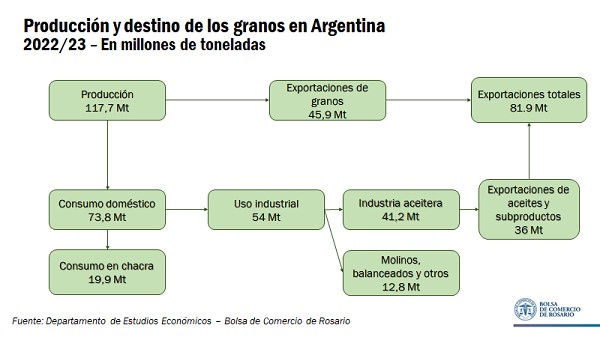 Para finalizar, el siguiente cuadro resume la matriz de oferta y uso proyectada para la campaña 2022/23 en Argentina.