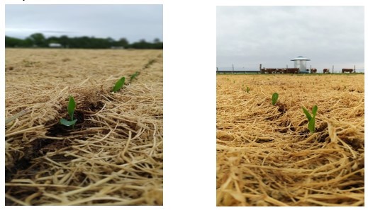EEA INTA Marcos Juárez, 2021: maíz sembrado sobre suelo con Vicia villosa con una rolada, sin herbicidas