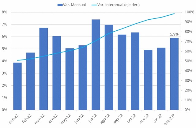 En los primeros 15 días del año, los precios volvieron a acelerarse y marcaron un incremento de 0,8 puntos porcentuales desde el dato recientemente publicado por el INDEC. En consecuencia, la inflación del último mes móvil (últimas cuatro semanas) se sitúa en 5,9%. No obstante, teniendo en cuenta la dinámica de las últimas semanas, enero cerraría en 6,3% - el dato más alto desde octubre-. En ese caso, la variación interanual se ubicaría en 99,3%.